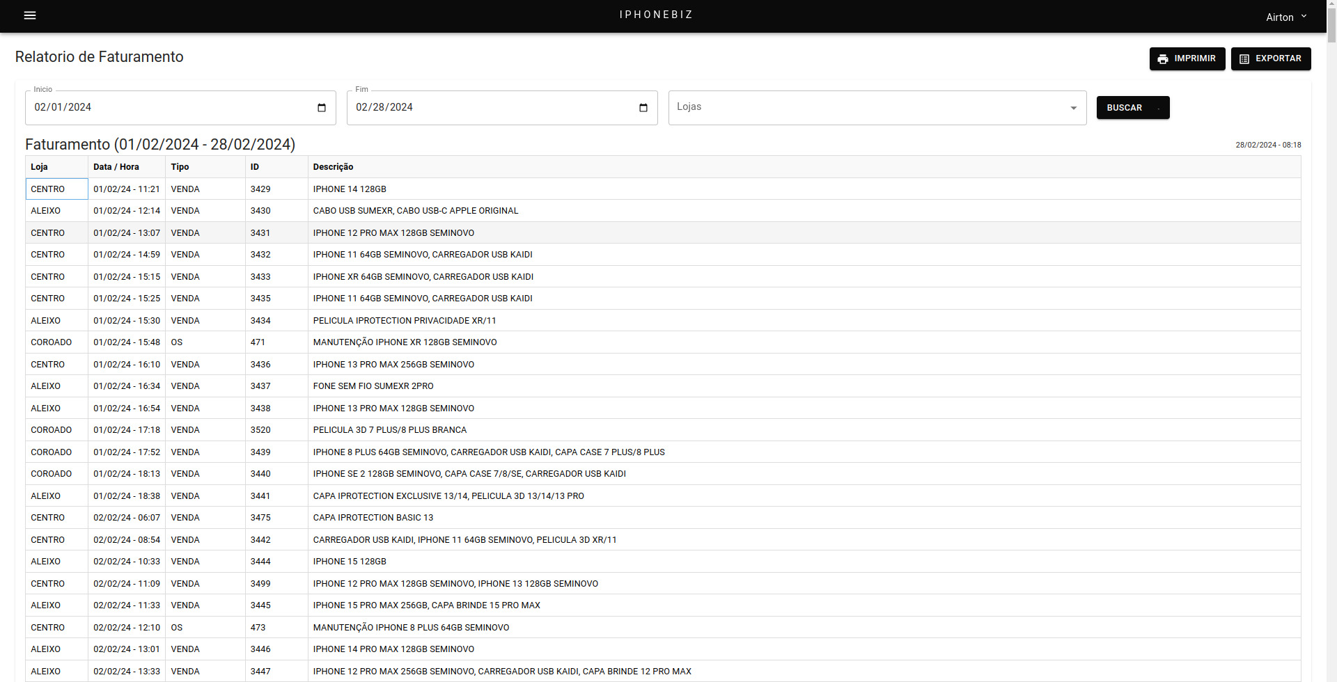 O iPhoneBiz é uma solução totalmente especializada e adaptada às necessidades específicas desse setor. Com funcionalidades como o registro de IMEI, venda com upgrade de dispositivos e registro de serviços de manutenção, o iPhoneBiz oferece uma experiência completa para lojas desse segmento.